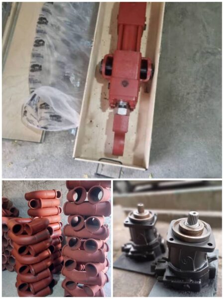 لولهها و زانوهای انتقال بتن (Pipeline & Elbows): لولههای فولادی با دیواره ضخیم و زانوهای خمیده که بتن تحت فشار از آنها عبور میکند. زانوها به دلیل سایش زیاد، از قطعات مصرفی پراستفاده هستند.